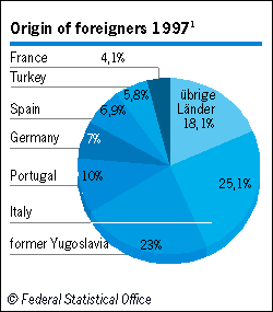 Verhältnis Schweizer zu Ausländer etwa 50:50.