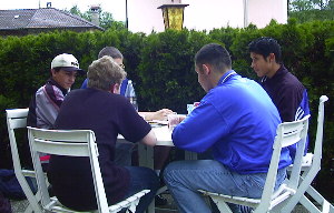 Nach einer kurzen Erfrischung stürzten wir uns auf die bereitstehenden Fahrräder und sausten in windiger Fahrt ins Tal. Einigen taten die Hände weh, vom Bremsen. Später nutzten wir endlich einmal den Grillplatz und das Beachvolleyfeld und machten uns einen gemütlichen Spielabend |