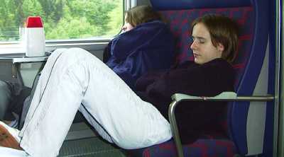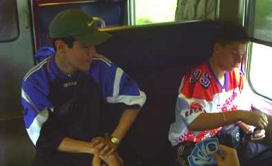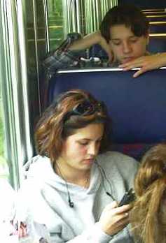 viele im Zug an ihren Natels herumspielten, waren sie hier