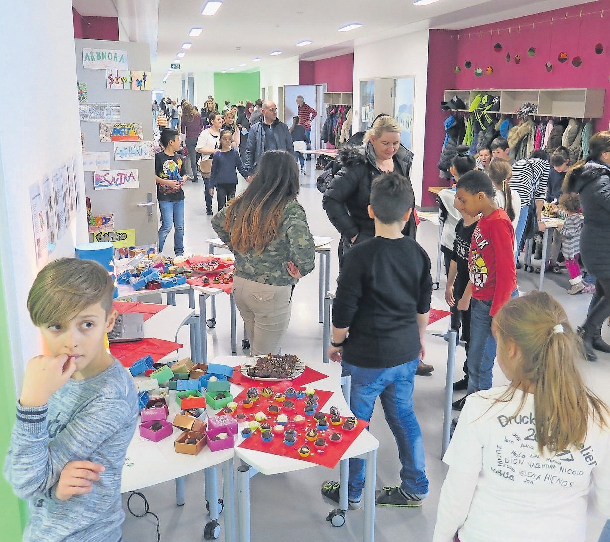 Seit den Herbstferien hatten die 340 Kinder im Schulhaus Hasel einen halben Tag pro Woche in einem Atelier gearbeitet. Jetzt präsentierten sie ihre Arbeiten. Der Ansturm zur Ausstellungsstunde war riesig: «350 Anmeldungen haben wir erhalten», sagt Andrea Boller von der Schulleitung. Eltern, Grosseltern, Geschwister und Behördenmitglieder wollten sehen, was in 13 Schulwochen donnerstagnachmittags in 27 altersdurchmischten Ateliers entstanden ist.