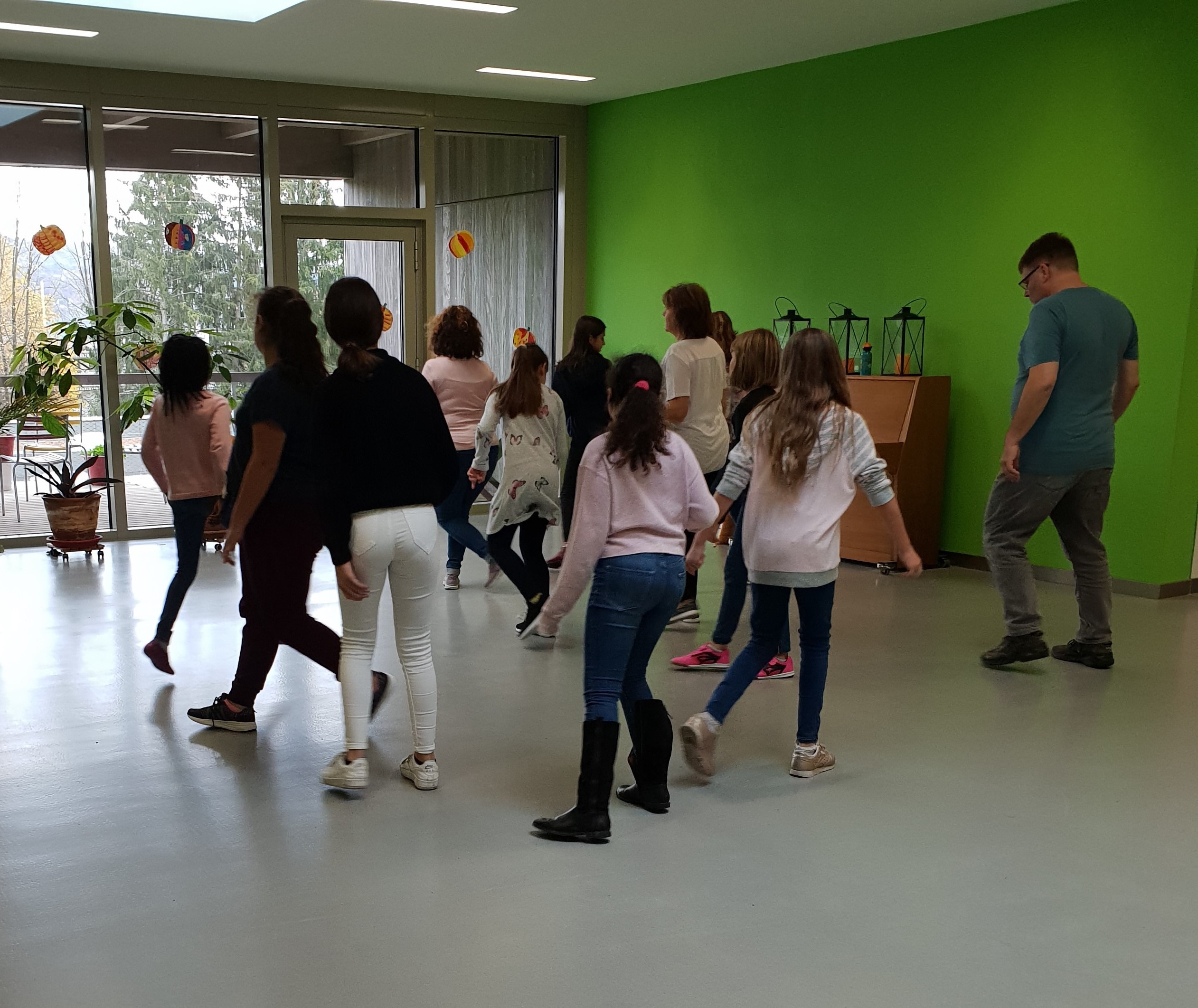 Musikbegeisterte Kinder konnten sich zwischen - Mundharmonika spielen, coole und lustige Lieder singen, zu Latino Musik tanzen oder den Hasel Cha-Cha-Cha lernen - entscheiden.