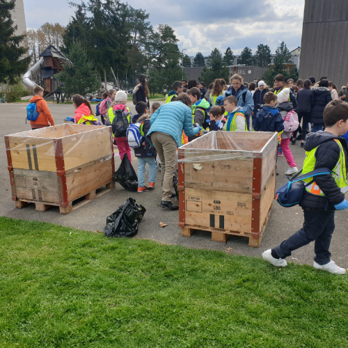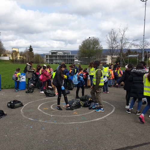 Am Montag hat sich das gesamte Schulhaus Hasel für den Cleanup-Day auf dem Schulhausplatz eingefunden. 360 Schülerinnen und Schüler sind gewappnet mit Abfallsäcken und Handschuhen in ganz Spreitenbach unterwegs gewesen und haben den ganzen Morgen Abfall eingesammelt. Die vierten Klassen haben den Industriesektor auf Vordermann gebracht. Insgesamt haben die beiden Klassen über fünfzehn Abfallsäcke gefüllt. Von kleinen Papierfetzen, über PET-Flaschen und Glasflaschen bis hin zu Auto-Fussmatten und Fussbällen, alles wurde mitgenommen, um es anschliessend auf dem Schulhausplatz korrekt zu trennen. Dort befanden sich Boxen für Papier, Alu, Metall, Karton usw. Die Kinder haben die Abfallsäcke aufgemacht und den Inhalt in die korrekten Boxen entsorgt. Bei Unsicherheiten konnten sie sowohl die beiden Mitarbeiter der Gemeinde sowie auch die Lehrpersonen fragen.