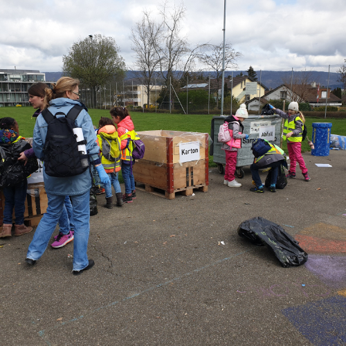 Freitags haben wir bei einem Spaziergang durch Spreitenbach gemacht und dabei die verschiedenen Abfallentsorgungsstellen besucht und besprochen was, wie und wo entsorgt werden kann.