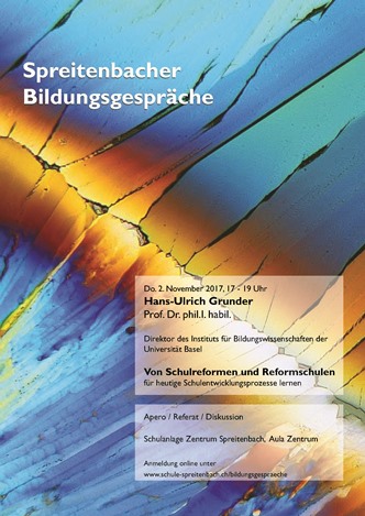 Donnerstag, 2. November 2017, 17:00 Uhr bis 19:00 Uhr, Aula Zentrum, Spreitenbach Von Schulreformen und Reformschulen für heutige Schulentwicklungsprozesse lernenHans-Ulrich Grunder, prof. Dr. Phil I habil. |