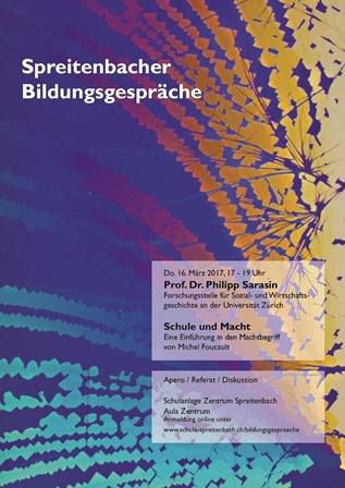 Donnerstag, 16. März 2017, 17:00 Uhr bis 19:00 Uhr, Aula Zentrum, Spreitenbach Schule und MachtEine Einführung in den Machtbegriff von Michel Foucault Prof. Dr. Philipp Sarasin |