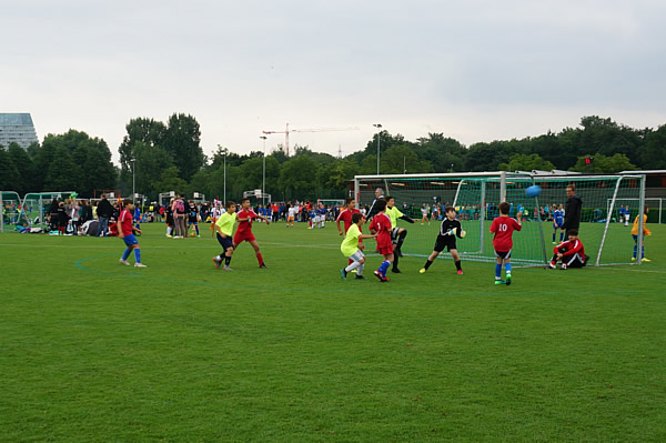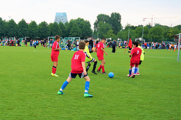 Das hat keine andere Mannschaft aus Spreitenbach geschafft, diese Jungs schon: eine Qualifikation zum Finale in Basel!Seit Jahren schon veranstaltet die Credit Suisse einen Schoolfootball-Cup, zu dem sich schweizweit Mannschaften von allen Schulen anmelden können. Als am 24. April das Qualifikationsspiel in Niederlenz anstand, war das eigentlich schon spannend genug! Lange war unklar, wie sich die Fünftklässler schlagen werden, eigentlich rechnete man schon damit, nach Hause zu fahren. Doch bis ins Finale haben sie durchgehalten und im Penalty noch den Tagessieg erkämpft! Nervenkitzel pur! Ab nach Basel! Am Mittwoch, 13. Juni, war es dann soweit, auch wenn die Lehrerin wohl einen flaueren Magen hatte als die Spieler. «Ach, natürlich haben wir damit gerechnet, ins Finale zu kommen», meint Konstantin lachend, und alle lachen mit ihm. «Die Quali isch ja au voll easy gsi!» Kichernd und scherzend verläuft die Zugfahrt ins ferne und grosse Basel. «Seid Ihr denn gar nicht nervös?» «Doch, doch», geben Davide und Enis zu. «Das ist ein wichtiges Spiel für die ganze Gruppe». «Und», fügt Arda noch hinzu, »das ist ja schliesslich auch das Finale. Ein ganz grosses Finale». Und die Fünftklässler sind dieses Jahr die einzige Mannschaft aus Spreitenbach, die sich für den Kanton Aargau fürs Finale qualifizieren konnte. Das zu hören, macht sie schon stolz, vor allem beim Anblick des riesigen Fussballareals rund ums St. Jakob-Stadion, mit tausenden von Spielern und vielen mitgereisten Fans. Über die Gruppenspiele der Fünftklässlerknaben hinaus reichte die Leistung letztlich dann leider doch nicht… zu gut waren die Gegner, zu wenig wollte das Teamspiel heute funktionieren. Lange Gesichter? Fehlanzeige! Man hat es doch so weit geschafft! Und ein Tag schulfrei ist es sowieso… Da wird einfach weiter geblödelt, gekickt und gelacht. Als Trophäe gab es vor der Heimfahrt T-Shirts des CS-Cups, damit sich die Jungs lange an «ihr Finale» erinnern können…